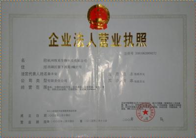 公司荣誉 杭州牧禾生物科技公司,以最优质的农产品,全力打造产、供 、销一条龙服务,来满足消费者的市场需求。在此,一贯支持我们的各级领导、团队的辛勤付出及广大消费者拥护,表示衷心感谢!我们将以最优秀的农产品和一流的服务,来满足更多消费者的需求! 证书名称 照片 发证机关 发证时间 企业法人营业执照 杭州市西湖工商分局 2005年3月